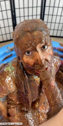 Stillmuddy rolled around with MessyCumfort on a tarp covered with pudding